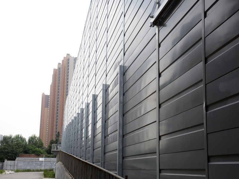 聲屏障立柱如果直接在圍墻頂部生根,考慮到風荷載要求,立柱高度一般不超過2.5米,間距2.5米左右較為適宜。圍墻聲屏障常用金屬鍍鋅板做基材,面板采用長圓形百葉孔,既美觀又具防水性,保證了雨雪天氣聲屏障的吸隔音性不降低。